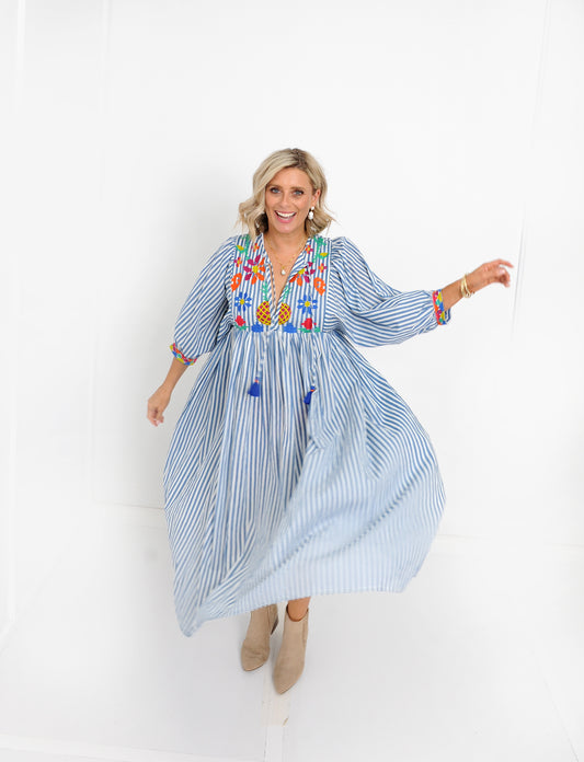 We use 100% viscose crepe for our shirts and lightweight cotton for our tops. Both fabrics are breathable and ideal for warm climates.